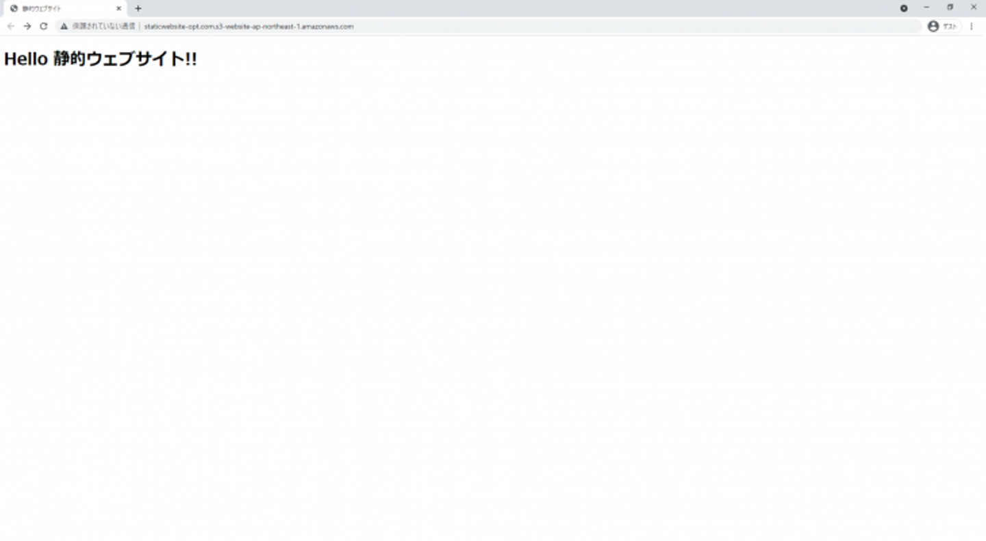 先ほどの設定が反映され、静的ウェブサイトホスティングが有効になりました。