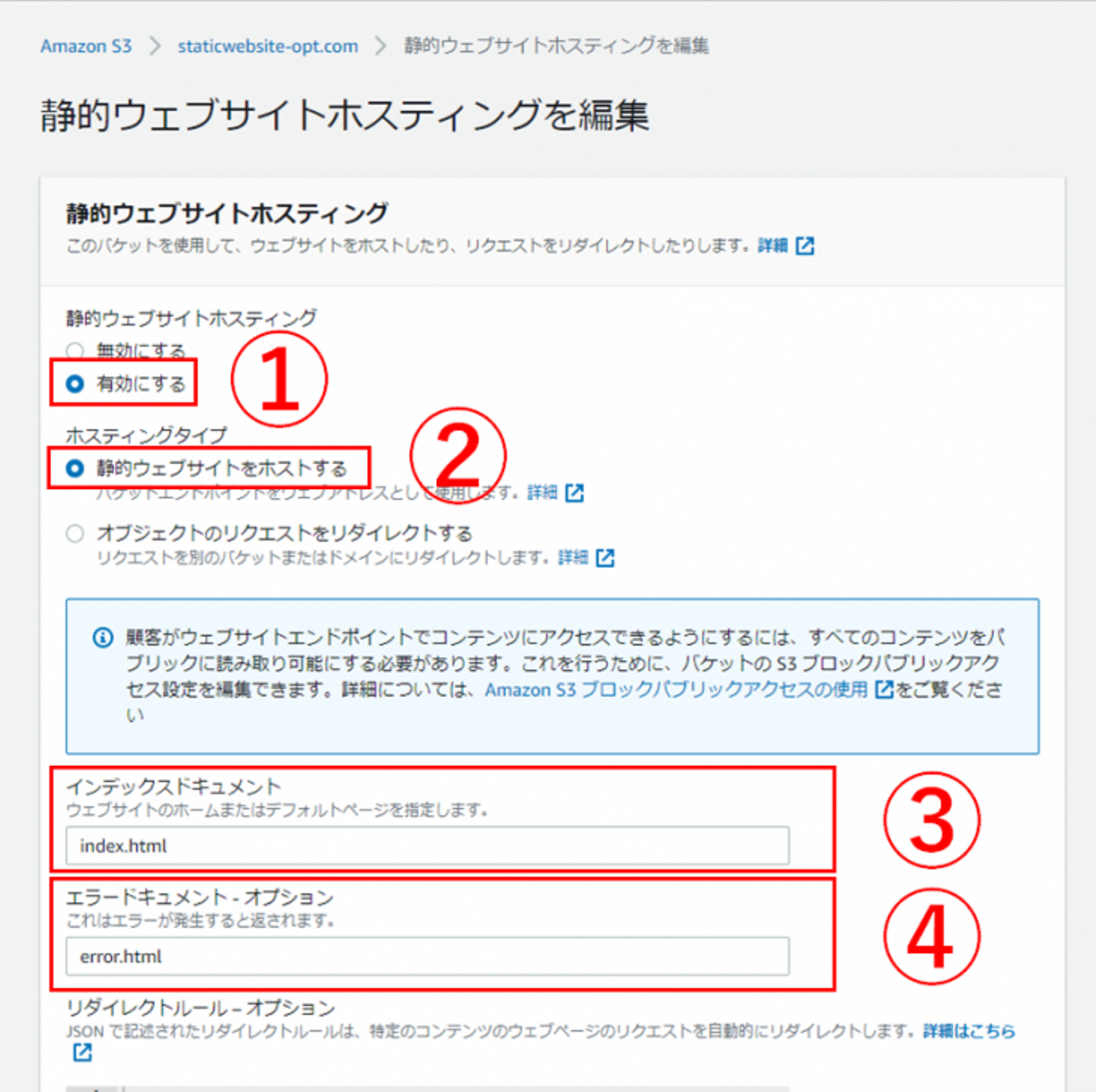という、S3にアクセスするとWebサイトが見れるようになる機能になります。