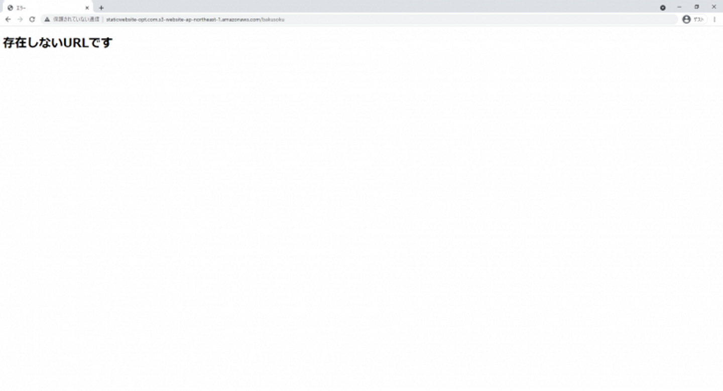 先ほど確認した、バケットウェブサイトエンドポイントに表示されているURLをクリックすると...