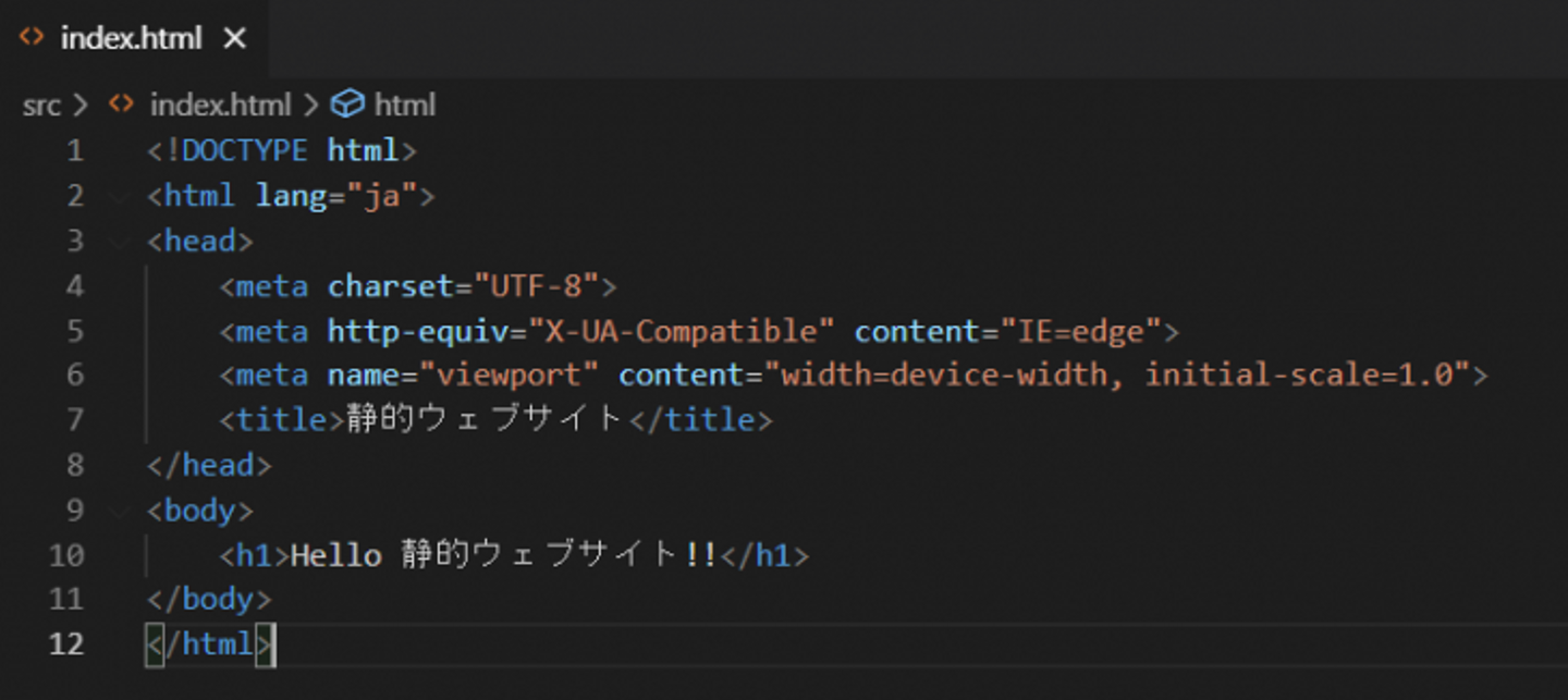 こちらのindex.htmlが、今回公開したいWebページのホームになります。