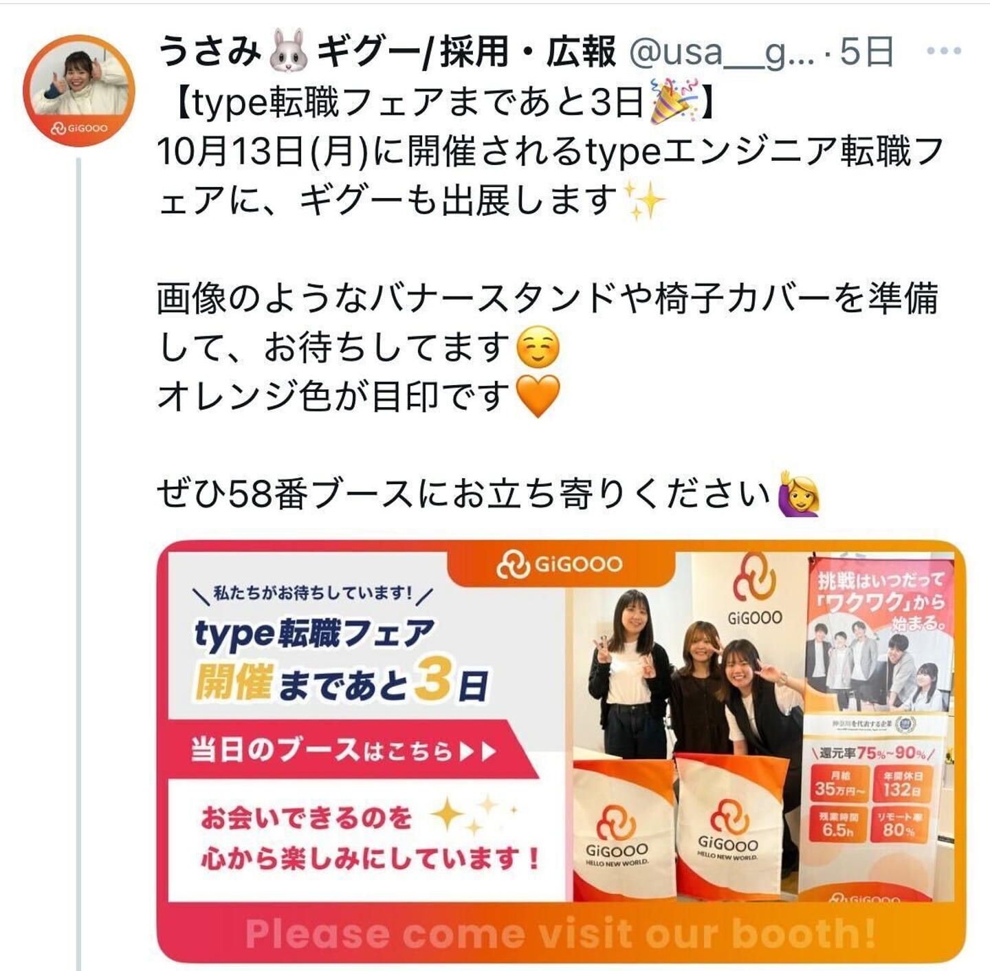 ギグーが気になった方は、HP、X、typeの求人掲載をぜひご確認ください!