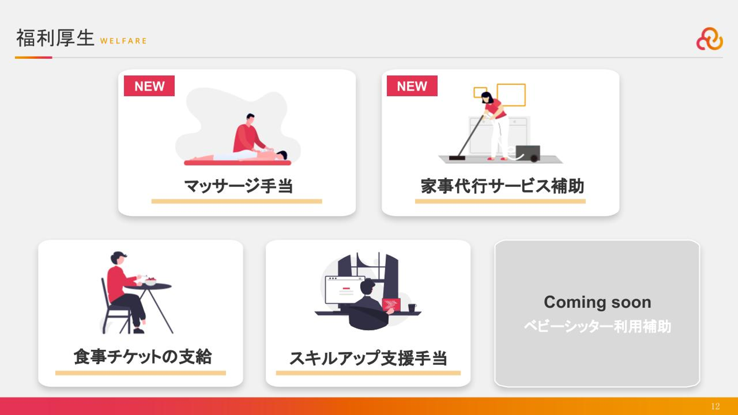 デスクワークで疲れがたまりやすいエンジニアの健康やパフォーマンス向上のため整体・マッサージ代の費用半額(月の上限5,000円)を会社が補助してくれる「マッサージ手当」なども予定されています!👏🏻