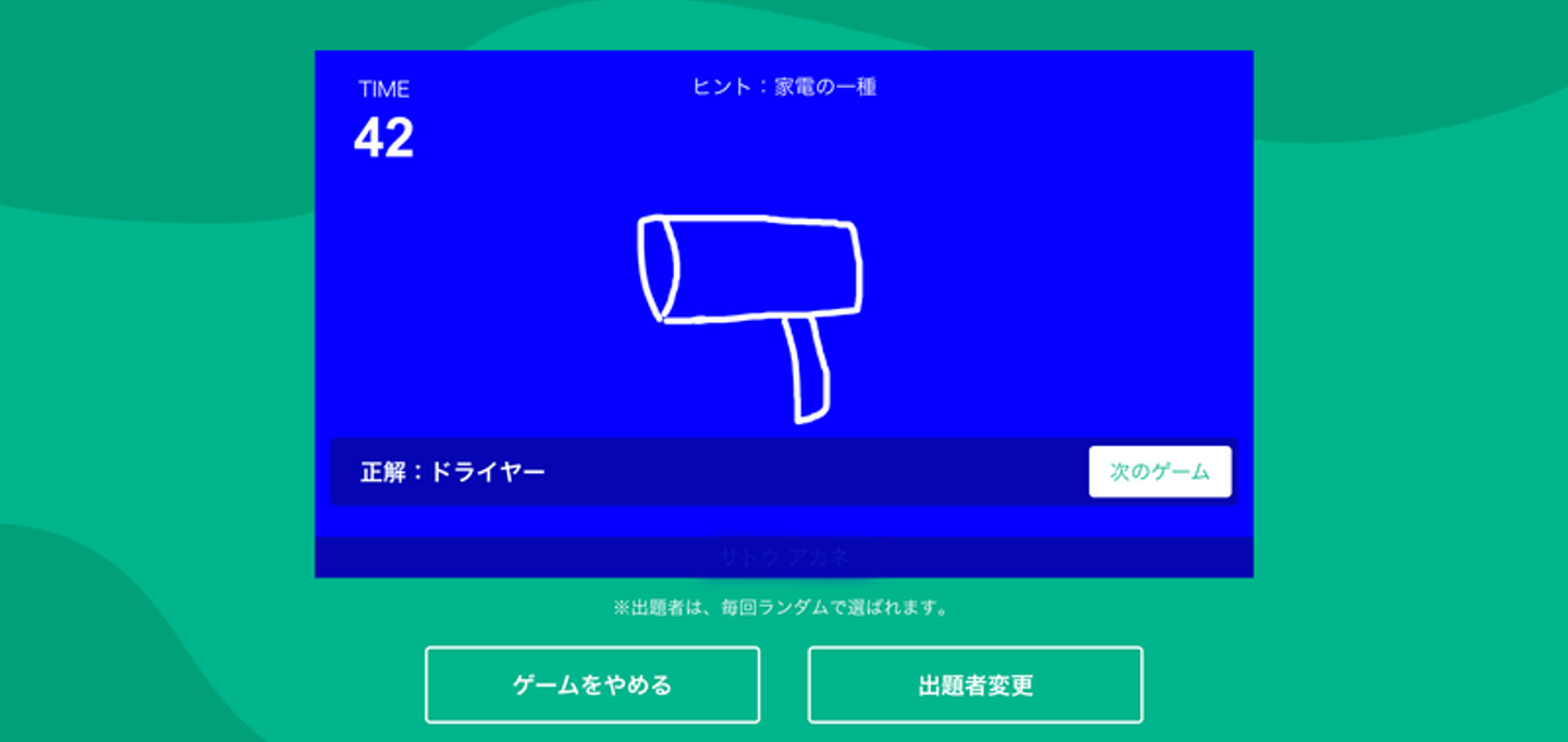 出題者がお題に沿って何かの絵を描き、何の絵を描いているか?早押しで答えるゲーム!!🙋🏻♀️