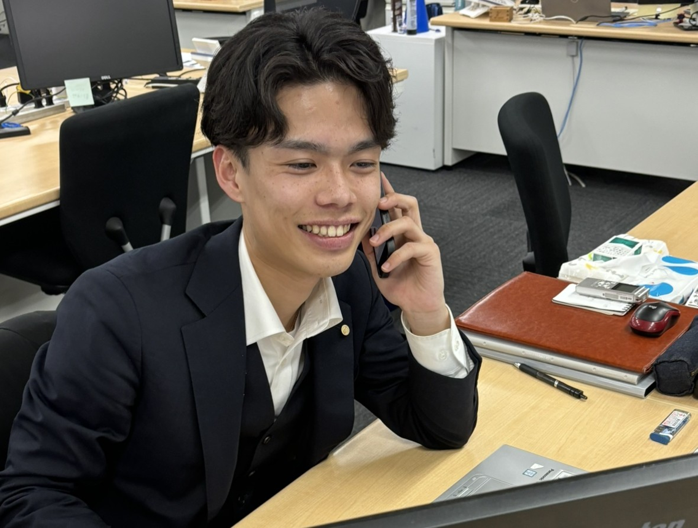 午前中のメイン業務である商談設定のお電話。 写真の僕、めちゃくちゃ笑ってますよね(笑)。