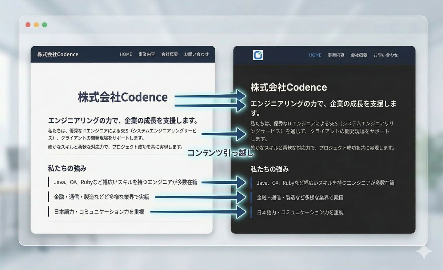 次に、既存サイトのコンテンツをReactコンポーネントとして移植するタスクを依頼しました。驚くべきことに、最初のプロンプトだけで全体の約95%が正確に移植されました。 残りのわずかな欠落も、追加の対話を通じて修正。手動であれば数日かかる作業が、わずか数時間、数プロンプトで完了したのです。