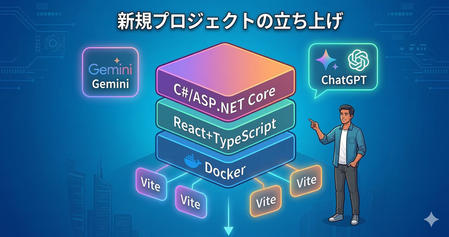 新しい技術スタックに挑戦する際、かつてはドキュメントの海に溺れる時間が不可避でした。しかし、AIをフル活用することで、そのプロセスは劇的に変化しています。今回は、C# ASP.NET CoreとReactを用いた新規プロジェクトにおいて、私たちがどのようにAIと並走したのかをご紹介します。
