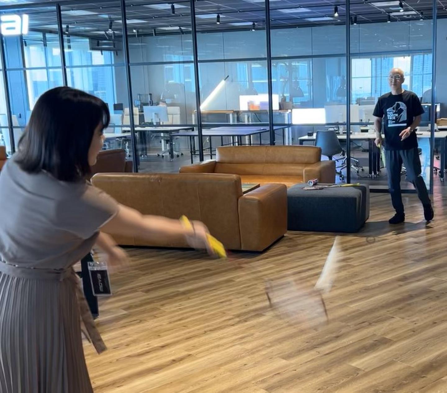 確かに広々としたこのオフィスだったら、バドミントン、出来るね。