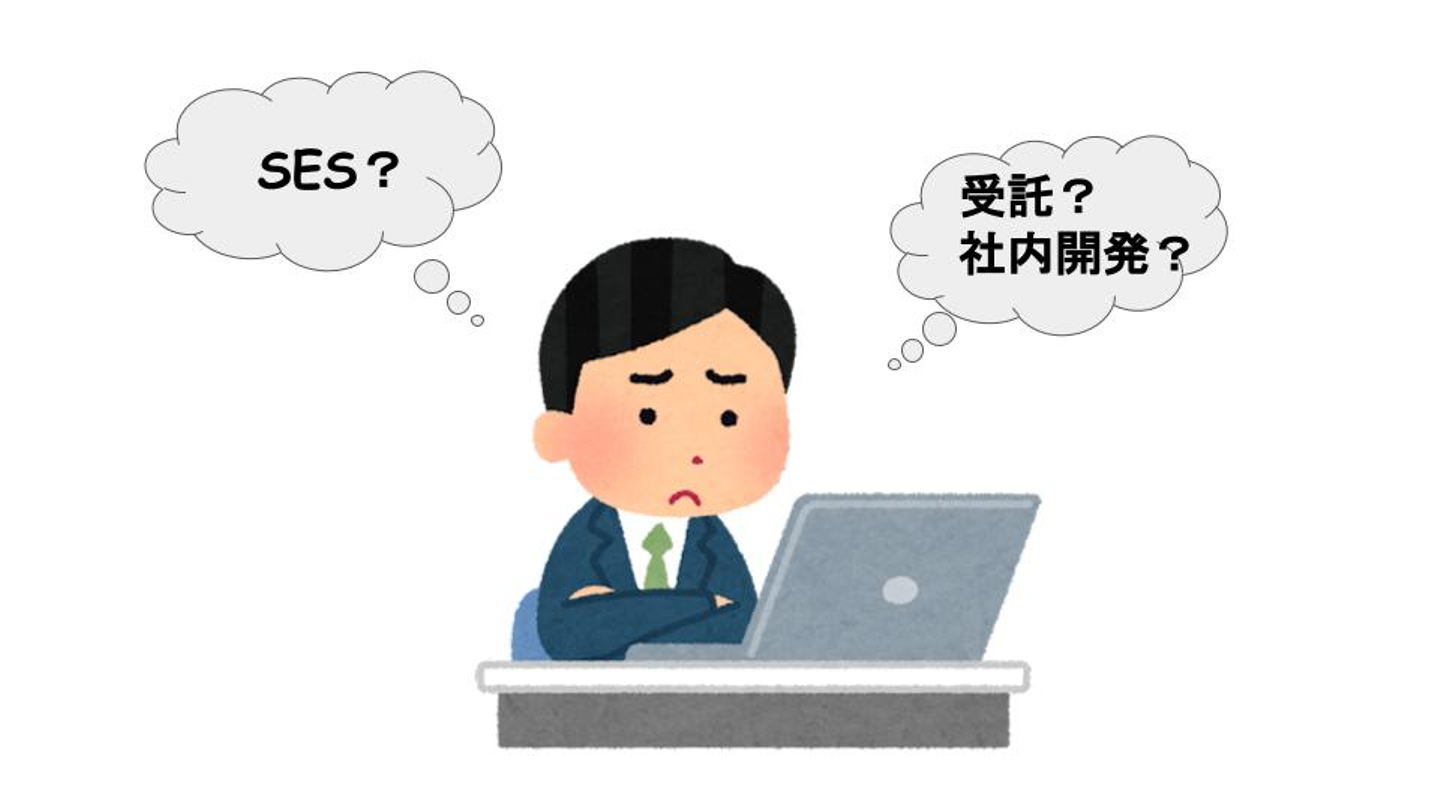 SESとは、システムエンジニアリングサービスの略で、ソフトウエアやシステムの開発・保守・運用における委託契約の一種であり、特定の業務に対して技術者の労働を提供する契約のことです。この契約では、システムエンジニアの能力を契約の対象とし、客先のオフィスにエンジニアを派遣して(常駐)、技術的なサービスを提供しています。