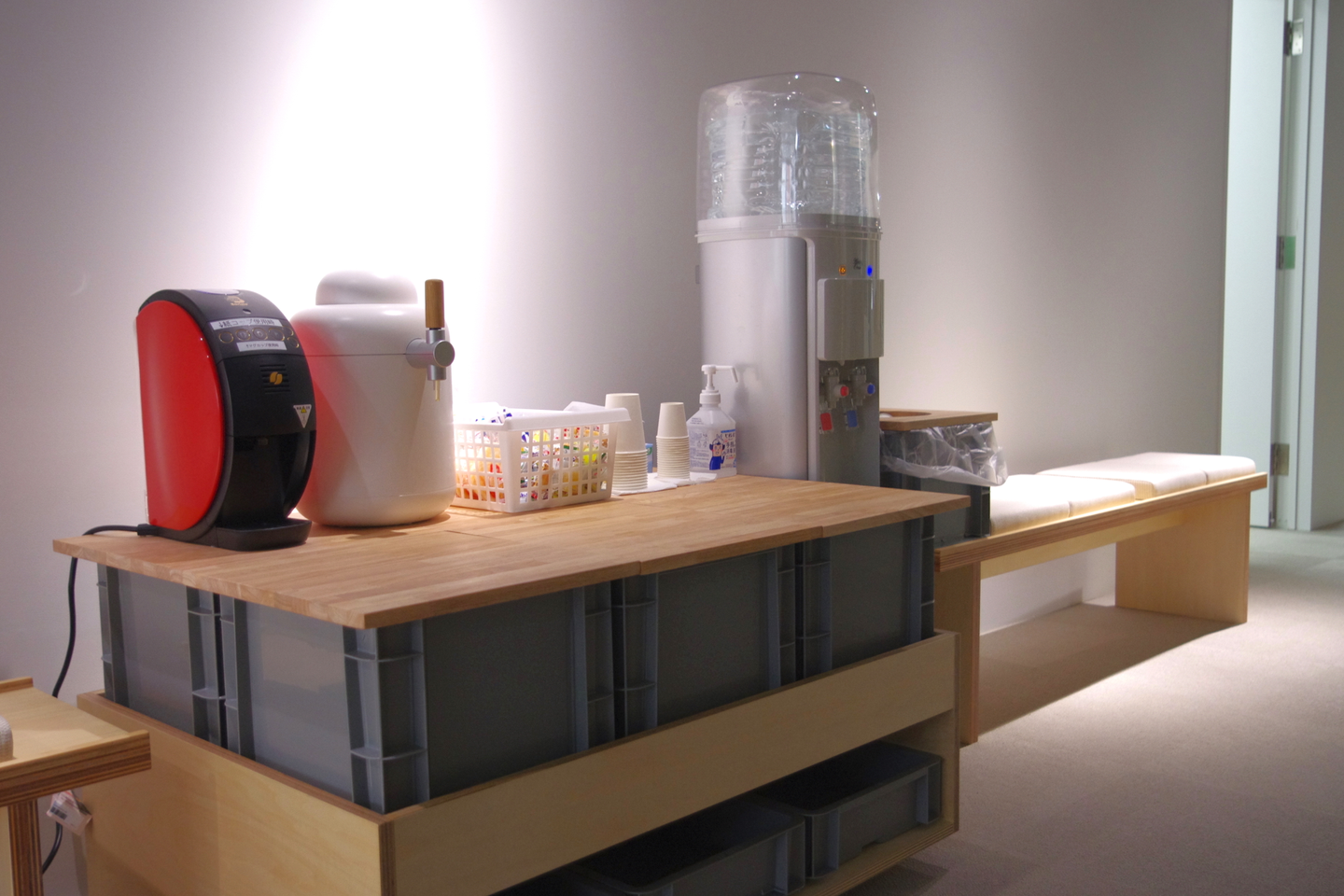 お茶、ウォーターサーバー、コーヒーマシン、ビールサーバーがあるので好きな時自由に飲めます!(ビールは19時以降OK)