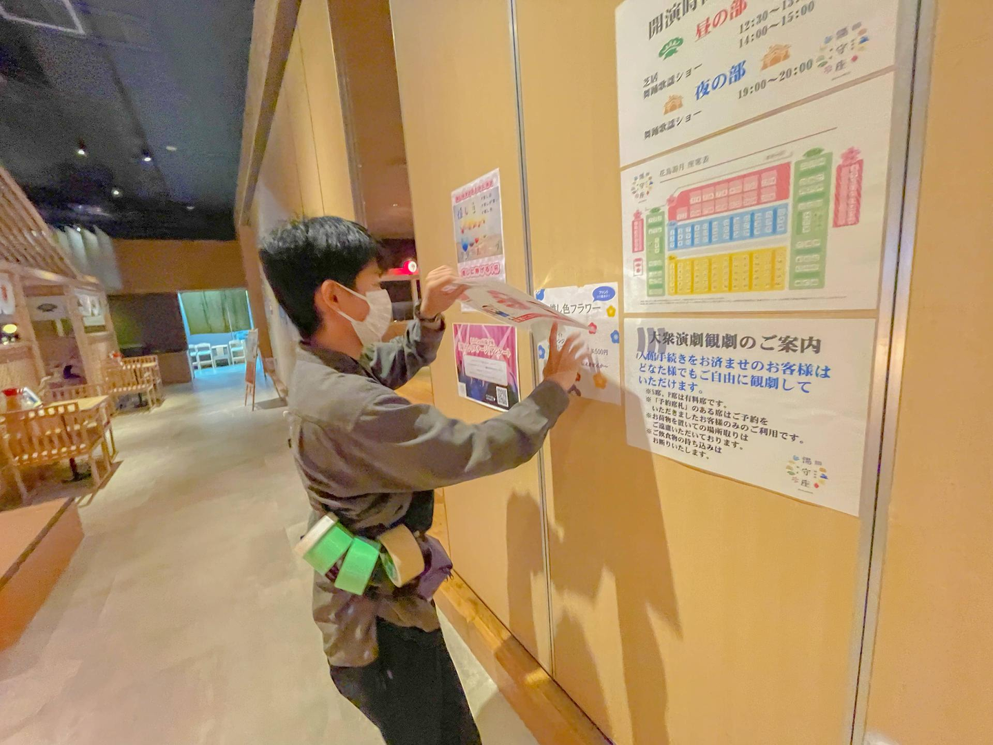 実は、最初は舞台にかかわるお仕事はあまりなかったんです。おふろ屋さんとしての業務をまずは覚えなければならず、フロントや清掃などの基本業務で一日を過ごすことが多かったです。