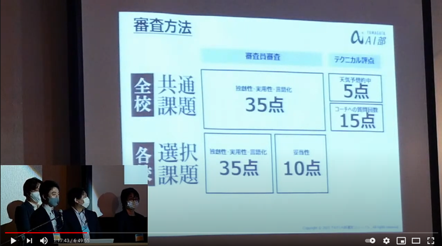2021年3月7日に開催されたやまがたAI甲子園の模様は、YouTubeでご覧いただけます。