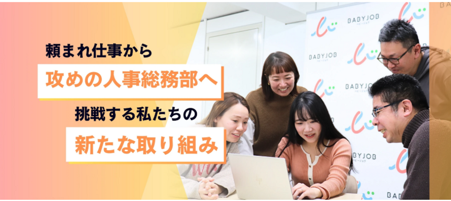 BABY JOBの人事総務部は、会社のオペレーションを完璧にこなす「守りのプロ」であると同時に、事業の成長を本気で考え、組織の力を最大化する「攻めのパートナー」でありたい 。そんな熱い想いを持ったメンバーが集まるチームです 。