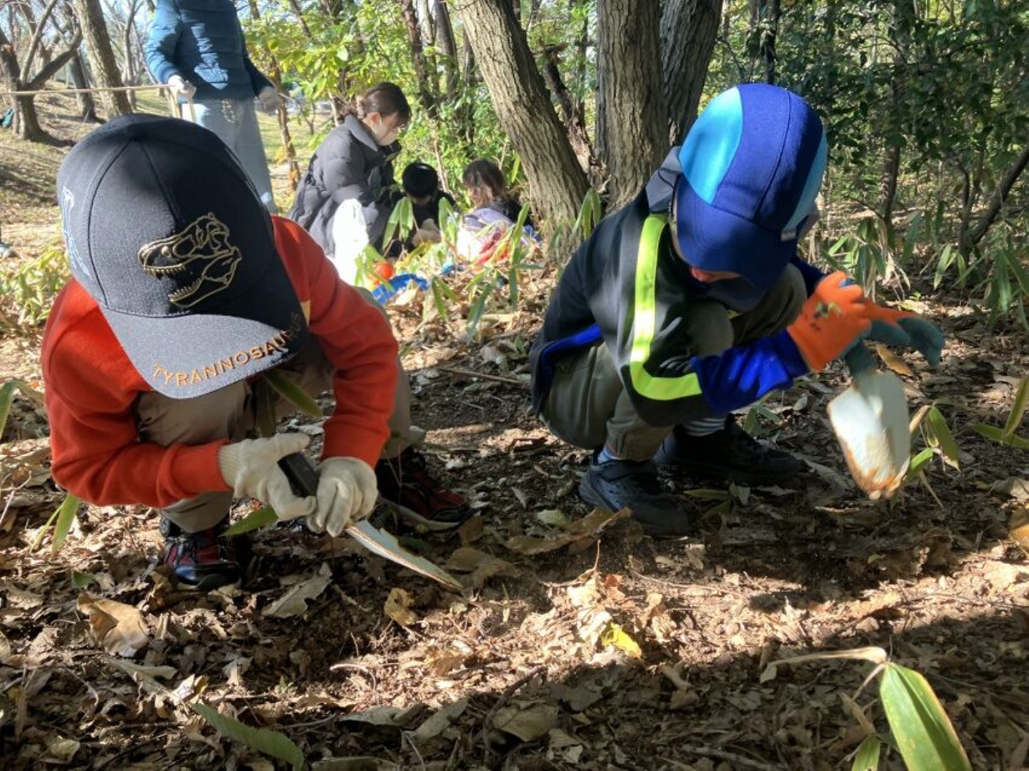 緑地公園内の森の中で思いっきり自然遊びを実施しました。