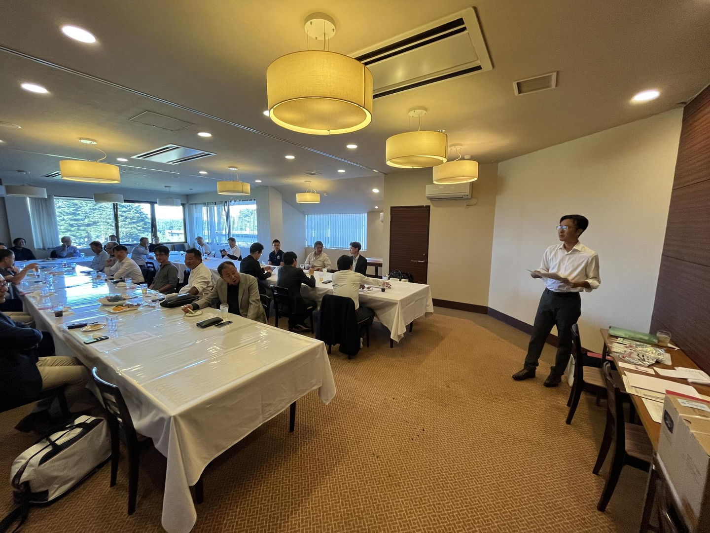 ラウントあとの参加者皆さんでパーティ。優勝はベテラン管理職の山下さん、準優勝は若手管理職の仲本さん、3位にはなんと初参加の新卒2年目の河野さんが入り、表彰式も盛り上がりました。練習した成果がありましたね。ゴルフは若者、年長者も一緒にできる素晴らしいスポーツだと思います。
