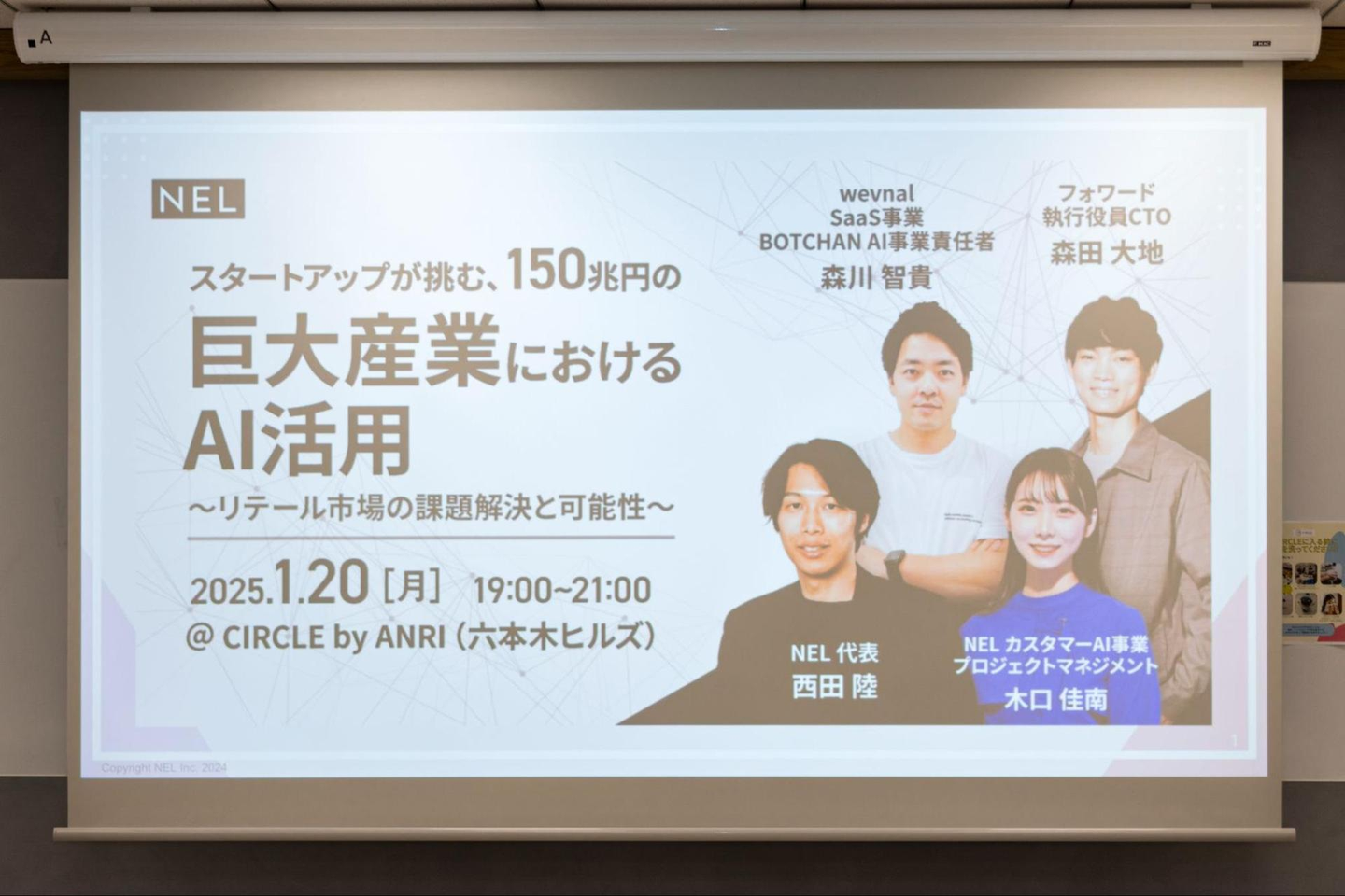 “150兆円”という巨大産業における、AI活用の可能性についてNELはどう考えているのか。2025年1月20日、「スタートアップが挑む、150兆円の巨大産業におけるAI活用〜リテール市場の課題解決と可能性」と題したイベントを開催しました。