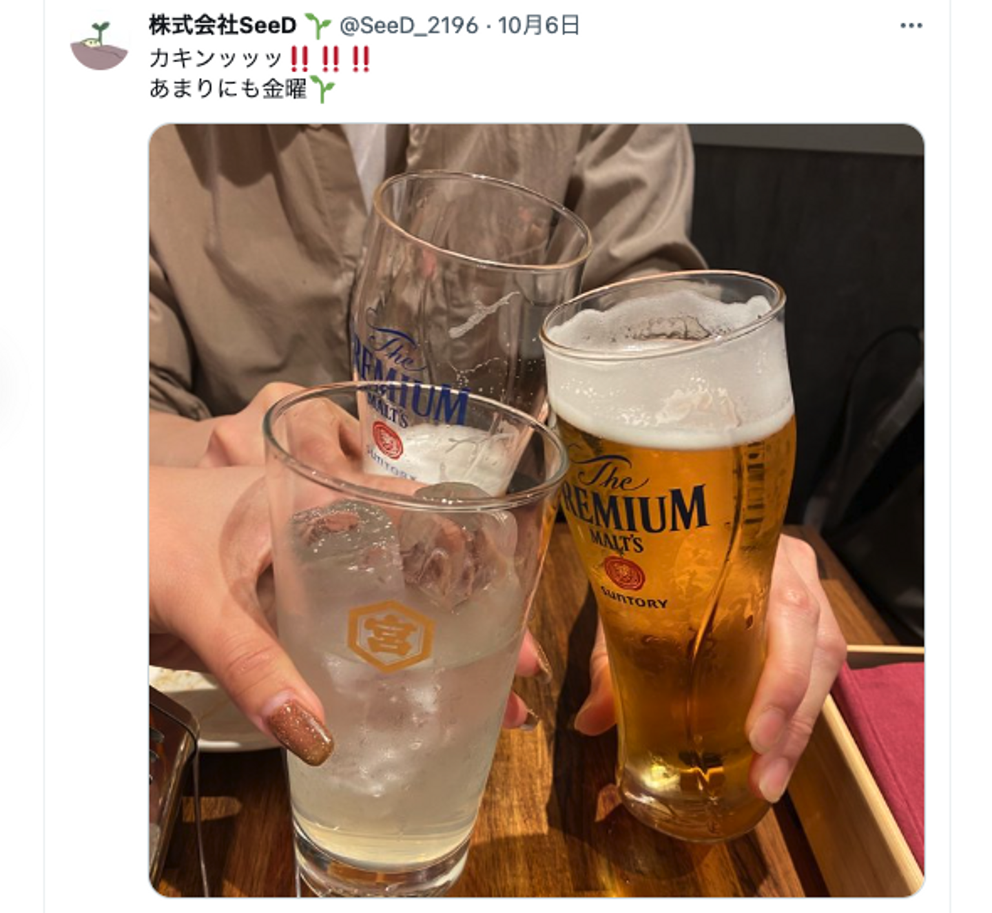 SeeDはお酒や美味しいご飯が好きな人が多く、よく社員同士でも飲みに行ったりしています。