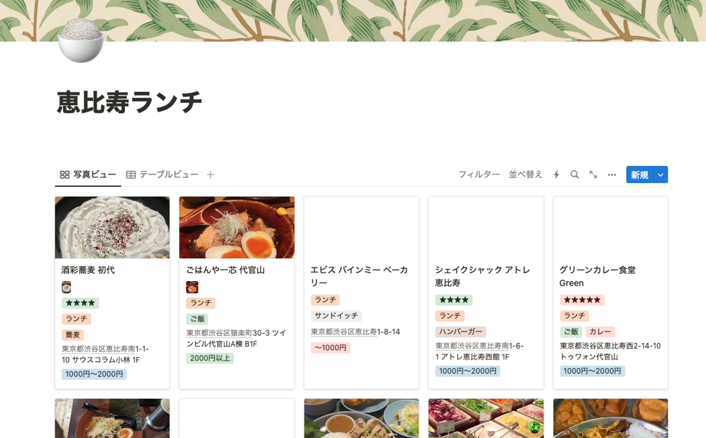 オフィスが恵比寿にあるので、恵比寿ランチのデータベースが存在します。