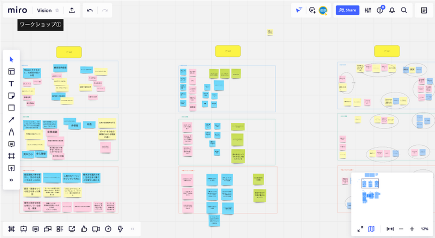 当社ではメンバー全員参加のワークショップ型でのボトムアップ形式と経営陣からのトップダウン形式の2パターンのアプローチでビジョンを固めていきました。