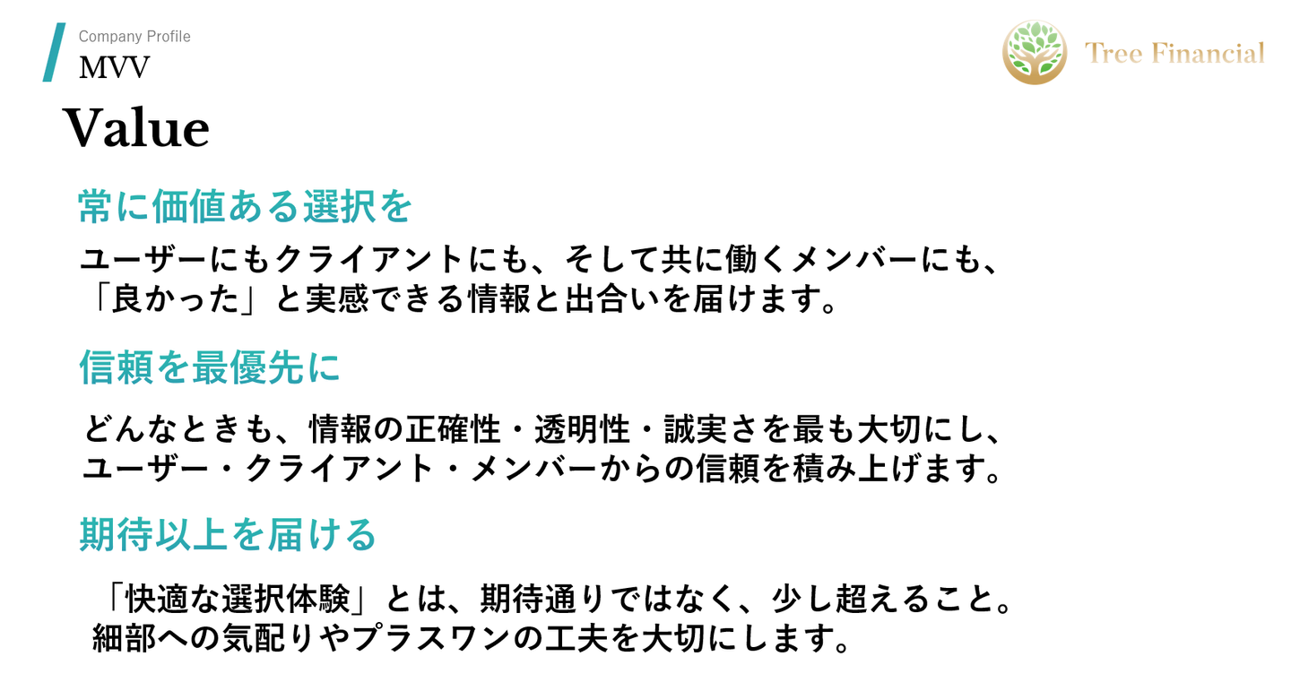 ツリーファイナンシャルのMVVに対するメンバーの功績を称え、成功事例を共有するために、新たに月例の表彰制度がスタートしました。