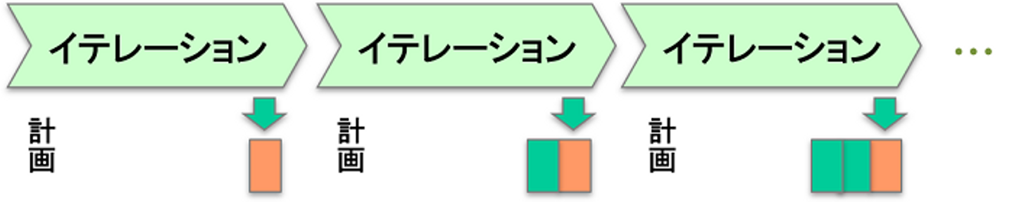 問題は、インクリメント。名前(増加とか増分という意味です)からして、スプリントごとに増えていくイメージがあります。弊社でも、アジャイル入門の講座ではこんな図で説明をしています。