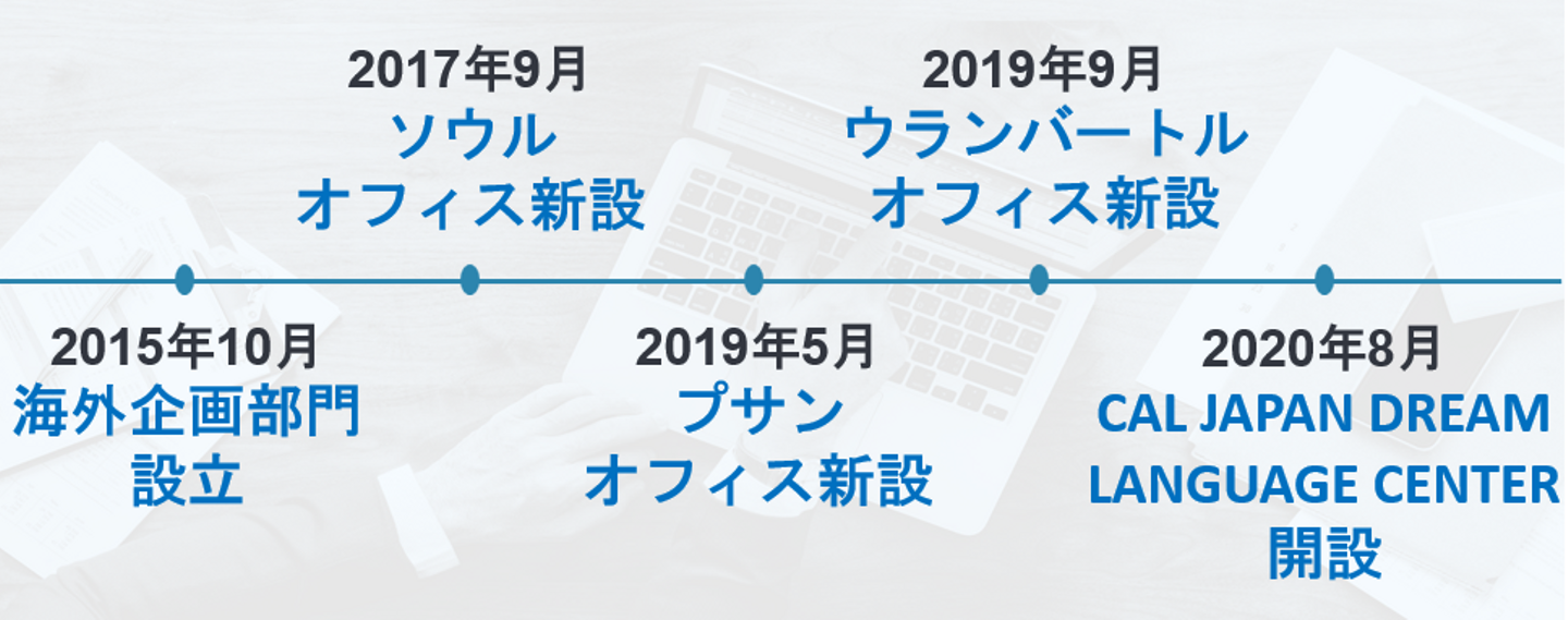 韓国では大学や教育機関で日本語教育がされていることも多く、卒業後すぐに日本国内で活躍される方が多くいらっしゃいます。最近のトピックスとしては現地の教育機関にてキャル専用カリキュラムを実施するなど、学校とも連携してより一層採用活動に力を入れています。