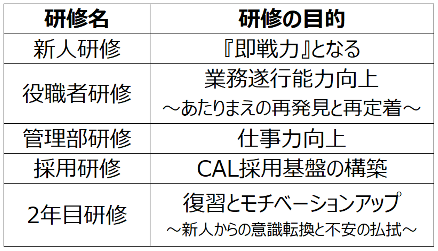 キャル株式会社の研修内容としては大きく2つに分かれています。