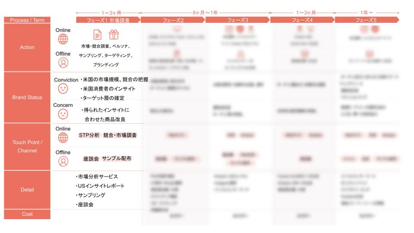 「海外進出を考えているが、一体何から始めればよいかわからない」、「海外進出をしているが、これからどう売上を伸ばせばよいかわからない」というご相談をいただくことがあります。同じように頭を悩ませている方に向けて、実際にCosme Huntがどのように海外進出をサポートしているのかを、フェーズ毎にご紹介します。