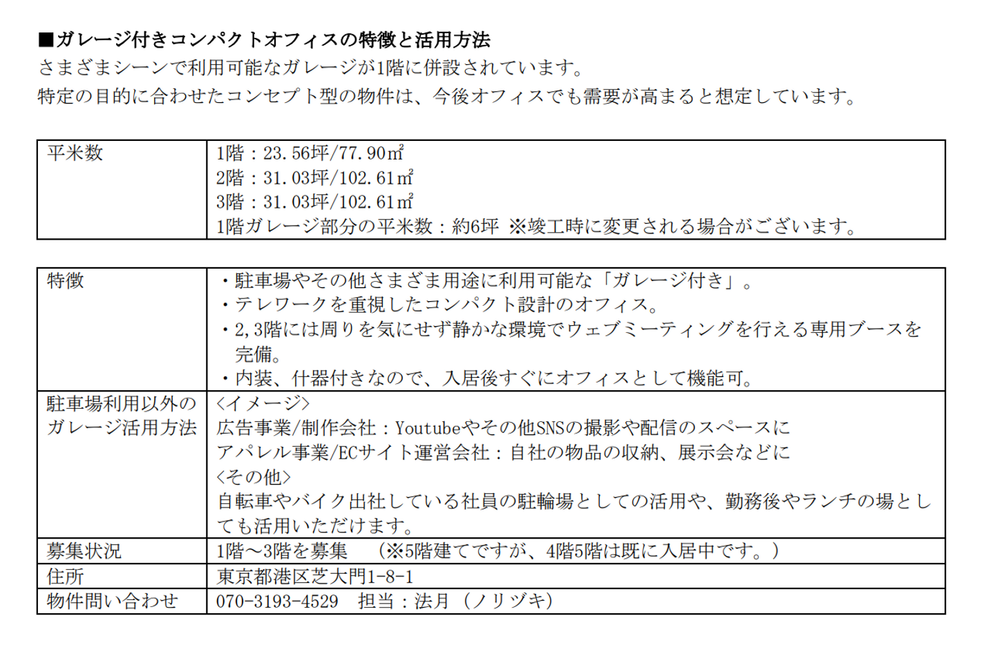 「コロナ禍で急増するオフィス縮小&移転。テレワークとオフィスを融合できる多目的ガレージ(駐車場)併設のコンパクト賃貸オフィスをオープン。」