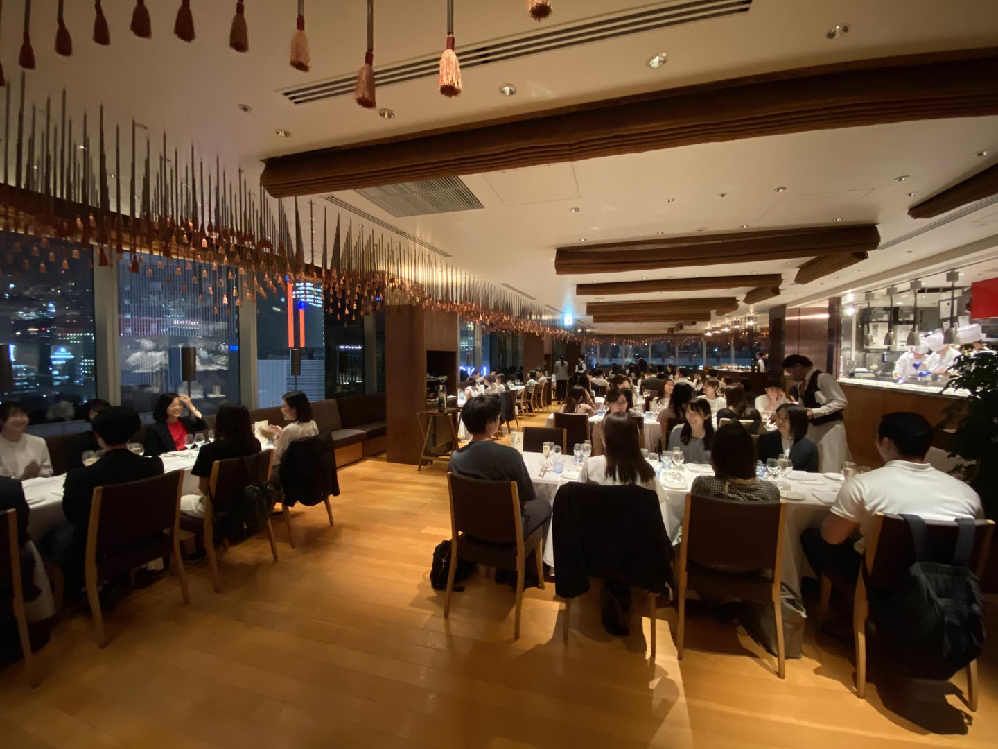 レクリエーションを楽しんだ後は、先輩社員と内定者全員で懇親会のディナーを楽しみました。