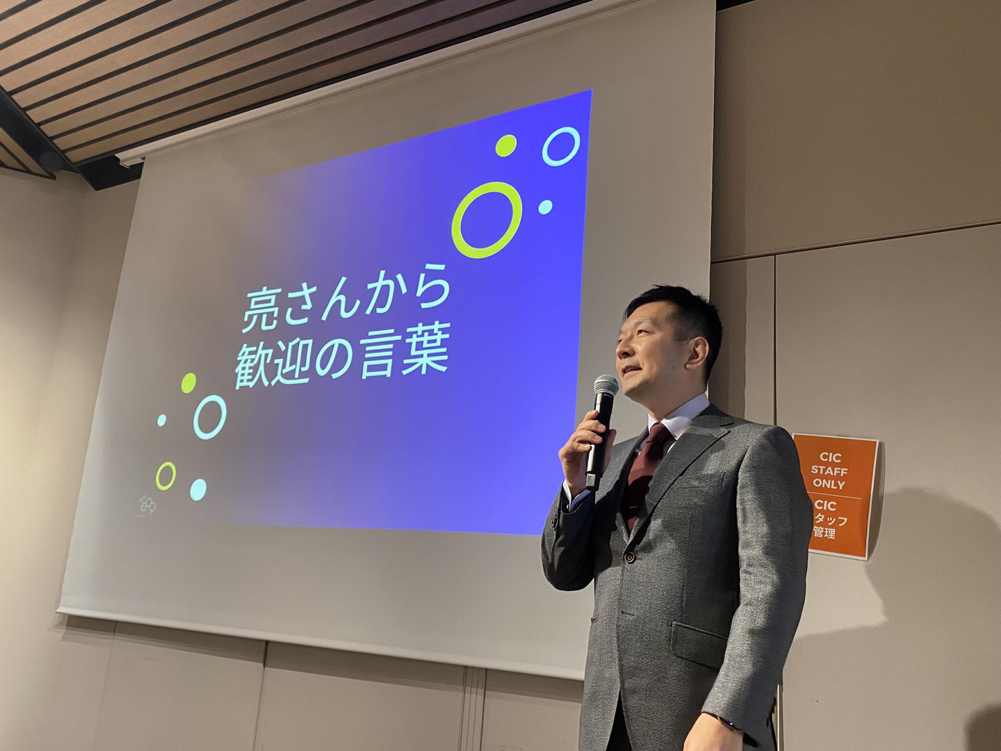 最初は社長である亮さんの挨拶から始まり、その後、証書授与がありました。