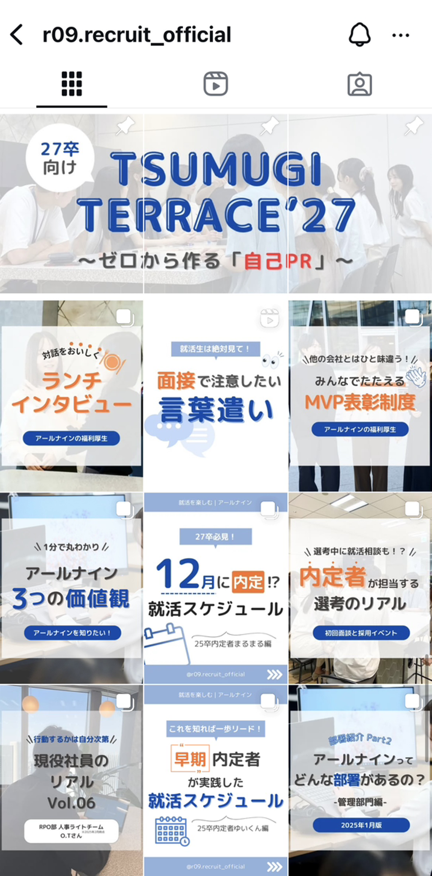 また、ストーリーズではアールナインの日常や初回面談でよくいただく質問への回答など、アールナインの文化が伝わる内容を投稿しています!