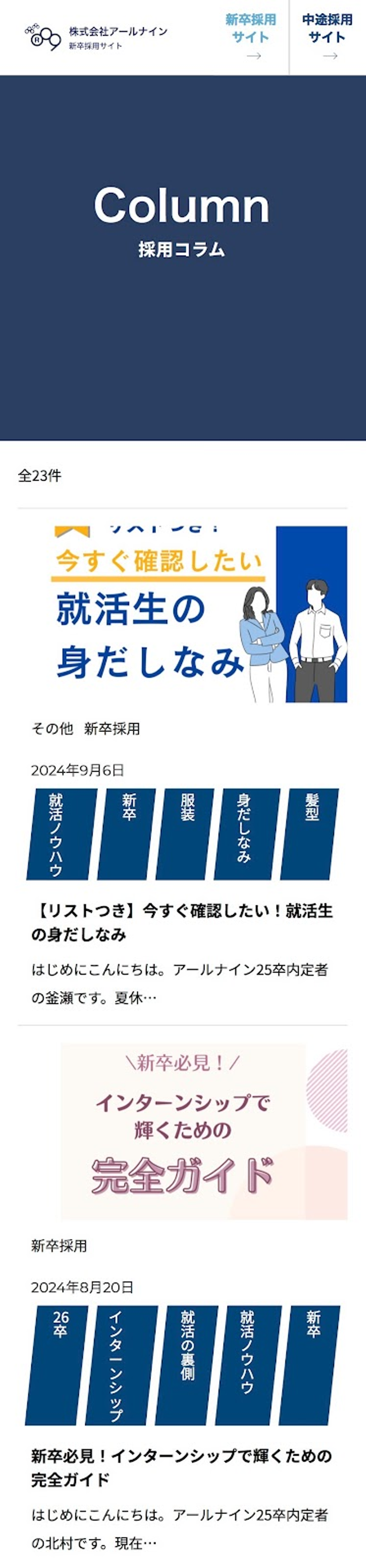アールナインの新卒採用HP内の「採用コラム」にて、