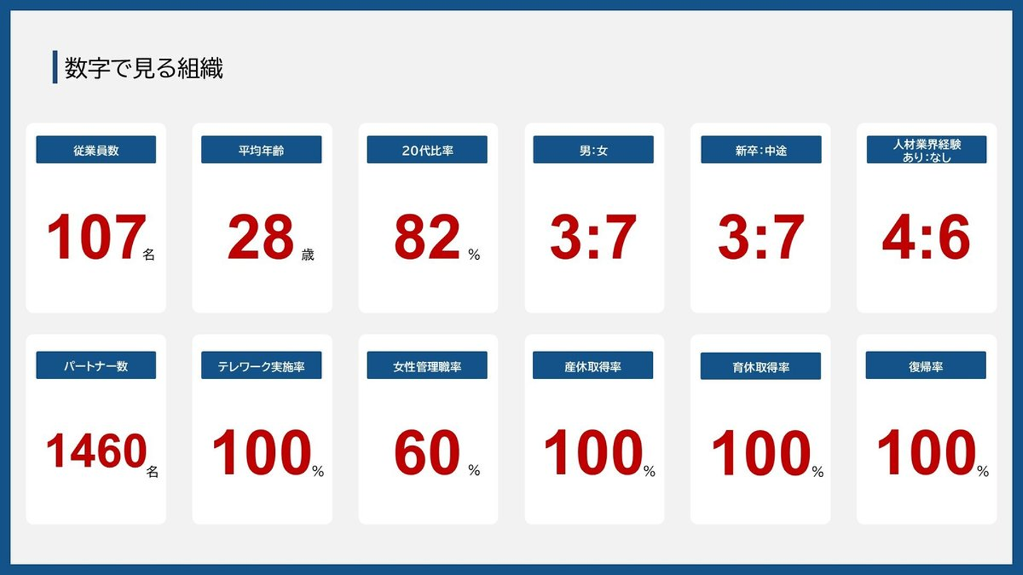 中途入社者が7割、うち6割が業界未経験者で活躍している会社です(この2年間で従業員数が倍以上に)。