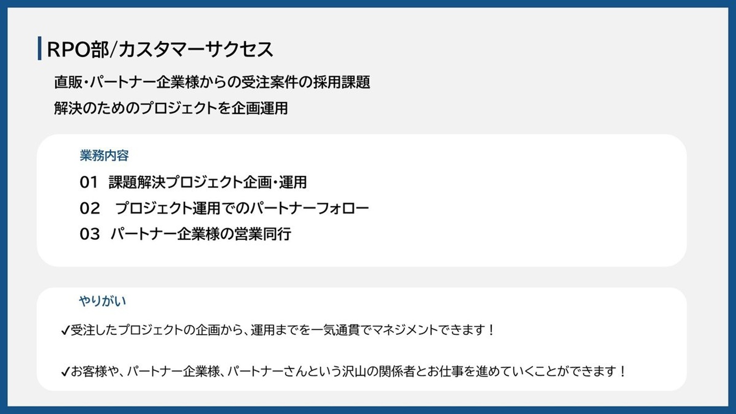 一言でいうと採用支援プロジェクトのマネジメント業務です。
