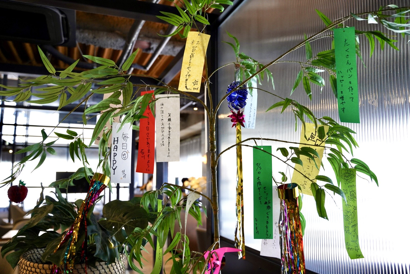 今回、オフィスに「笹」を用意し、社員が自由に願いごとを書いて飾れるようにしました。