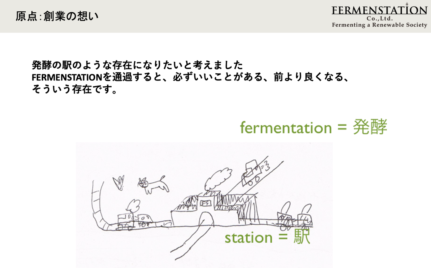 ここで、現在ラボのある岩手県奥州市の皆さんとの出会いがあるのですが、それについては後でお話しするとして、ファーメンステーションという名前に込めた思いをここでご紹介させてください。