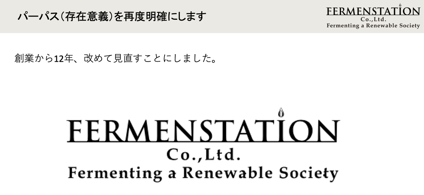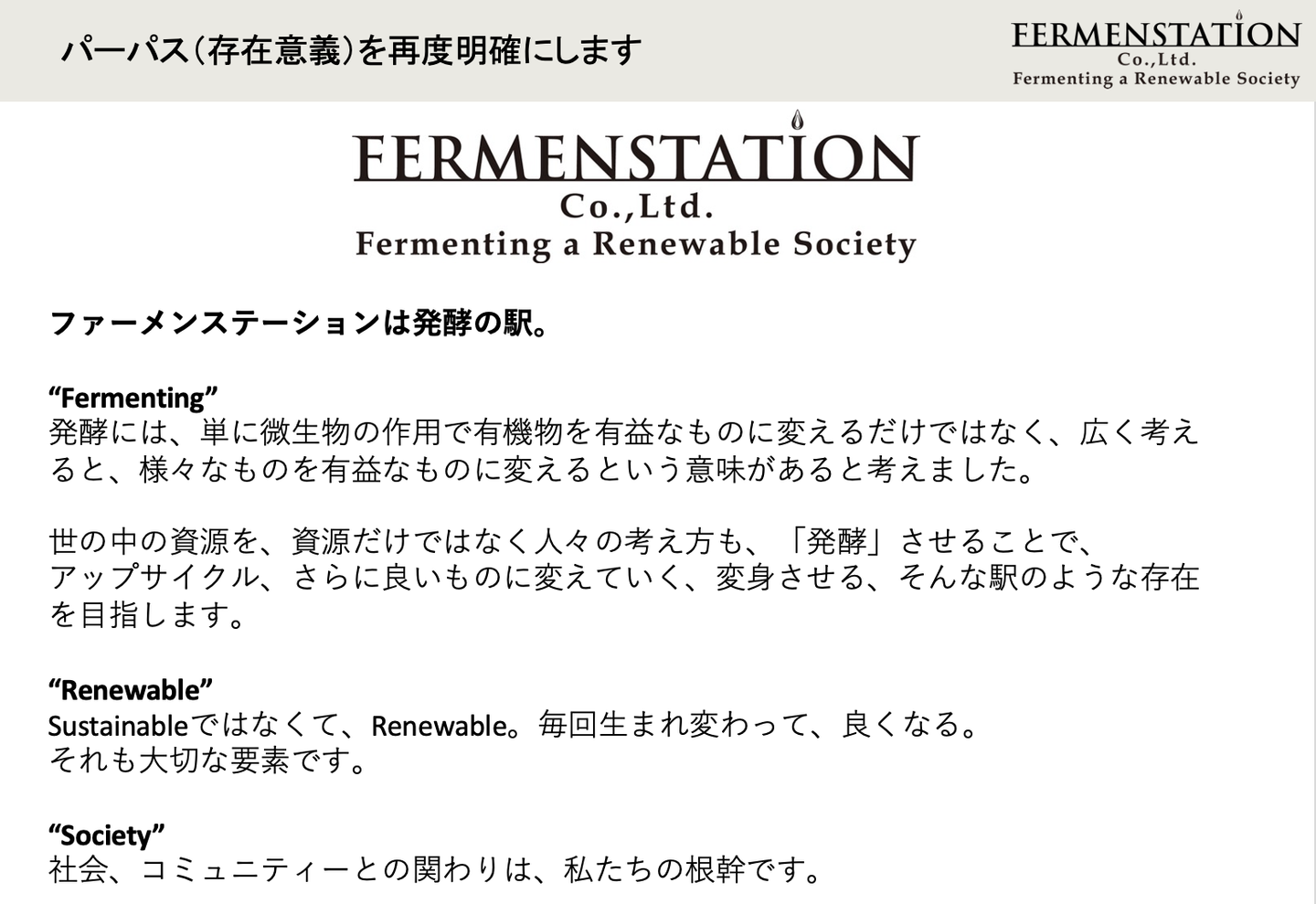 発酵技術は私たちの大前提、もっとも得意とする技術ですが、製品だけでなく、ファーメンステーションの事業そのものが、微生物の働きのように、私たちが関わることで、必ず良い方向に行く、さらに Fermentではなくて、Fermentingとすることで、やり続ける、動き続けたいという想いを込めました。