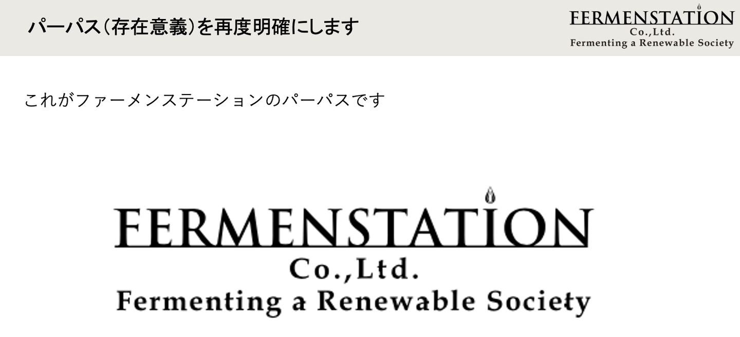そして最後に、私から、このパーパスとバリューを受けて、これからどんなことをやりたいと思っているかを話しました。2025年、2030年のファーメンステーション。