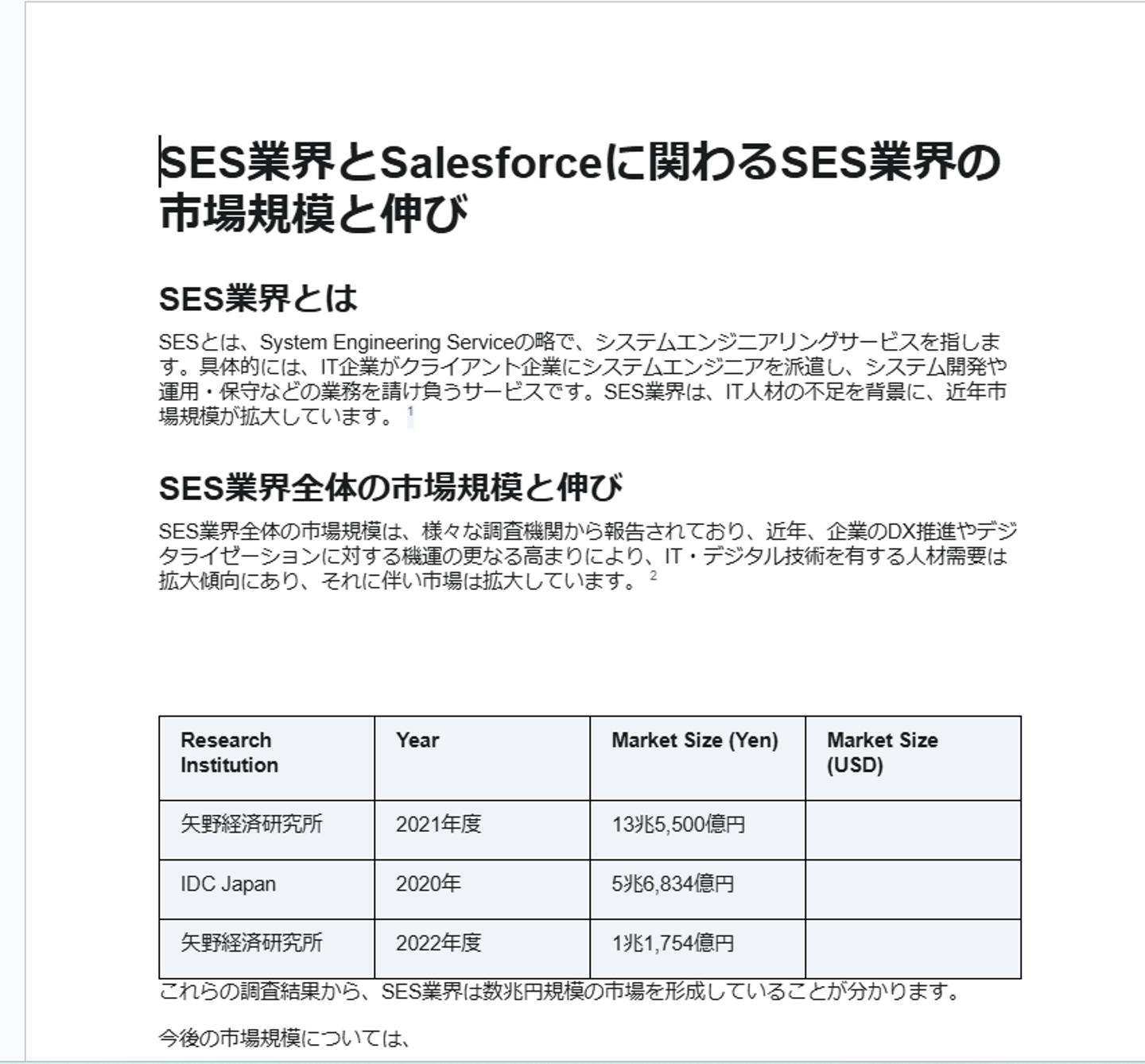 「SES業界全体と、Salesfoceに関わるSES業界全体の市場規模と、伸びを教えてください」