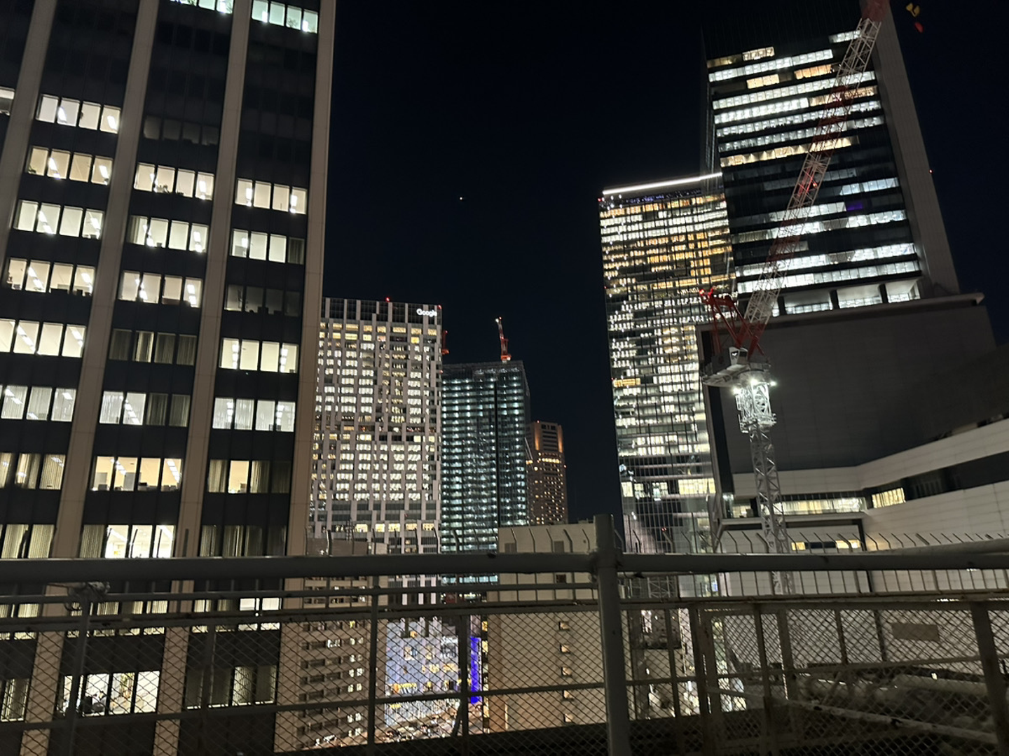 渋谷のど真ん中にあるので夜に屋上に出たりするとビルが光っていて綺麗だったりします🏢