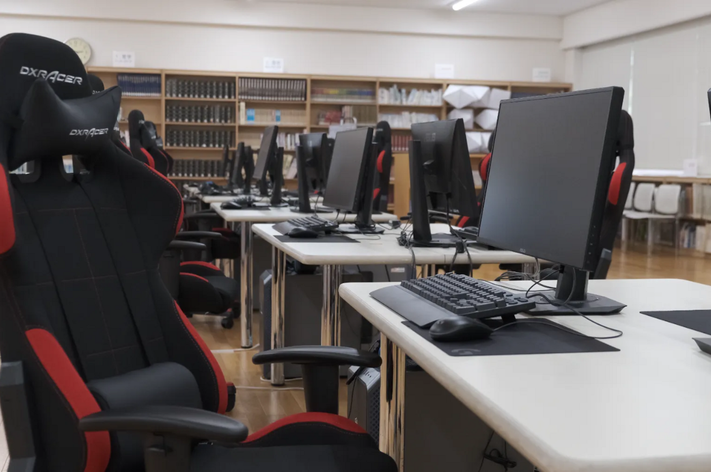 ↑図書室に設置された本格的なeスポーツの設備環境。現在準備中で、より充実していくのだとか。
