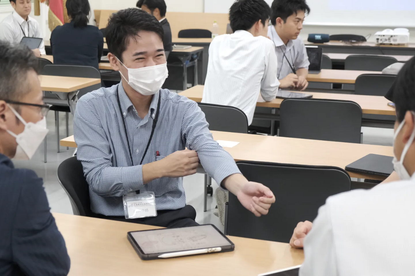 ↑取材した日に開かれていた教員研修の様子。研修について「授業で感じる課題を他教科の教員間でも共有できるのが嬉しい」と語るのは、写真中央の陶山先生