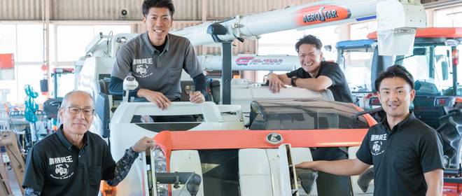 トラクターや田植機、コンバインは 生産者さんにとっては 長年一緒に頑張ってきた相棒です。 「廃棄」というお別れはあまりにも悲しすぎる・・・。 そこで、私たちが買い取り 洗浄やメンテナンスを行い、 必要とされる人に繋いだ結果 関わった多くの人たちに、喜びの輪が広がりました。 もっと生産者さんの力になれることがあるはず そんな確信を持ち 農業に関連する事業を展開し 生産者さんの収益最大化を目指しています。