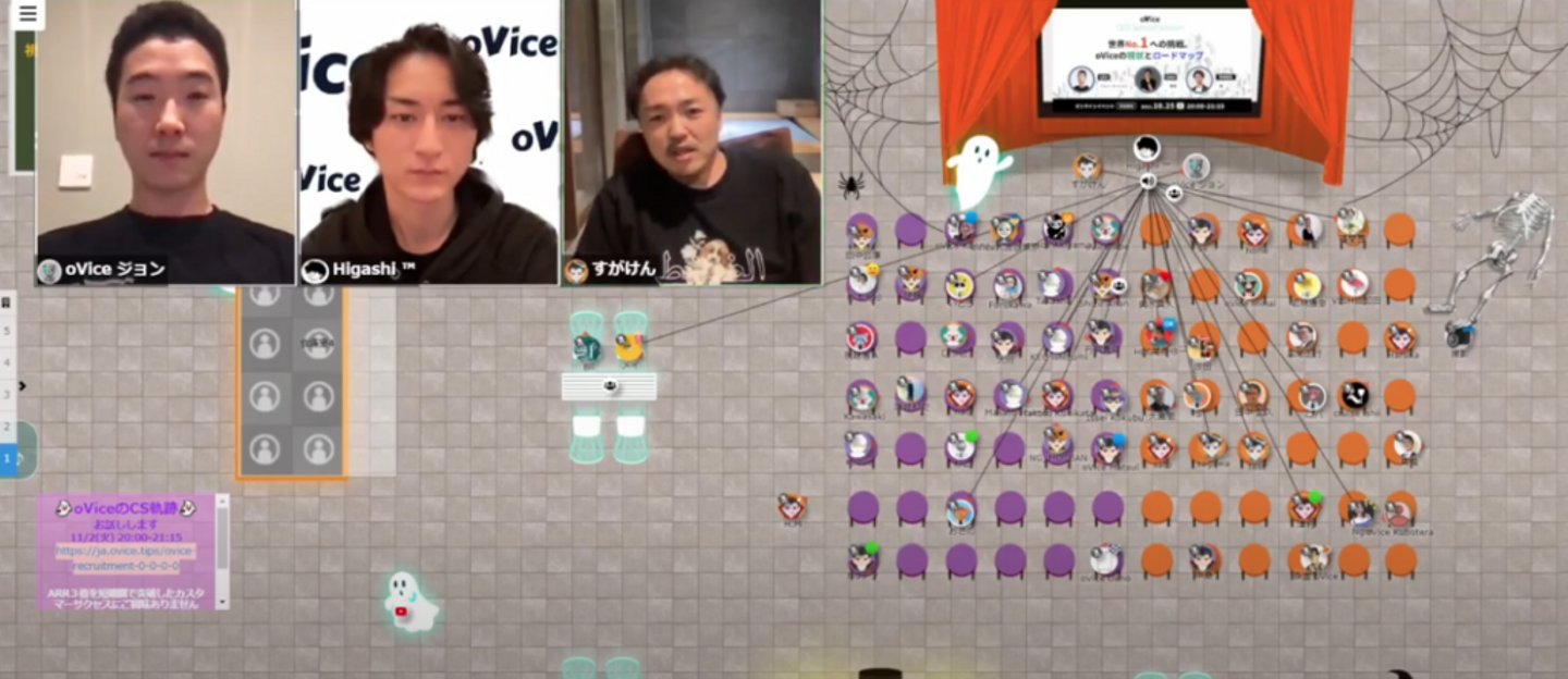 世界中のコミュニケーションを変える“日本発のグローバルプロダクト”となるべく、グローバルへの進出を展開する今、「世界No.1への挑戦。oViceの現状とロードマップ」と題したオンラインイベントを開催。スピーカーにはCEO ジョン・セーヒョン(@saehyungjung)、CMO 菅原健一(@xxkenai)、管理部長 東智也の3名を迎えました。