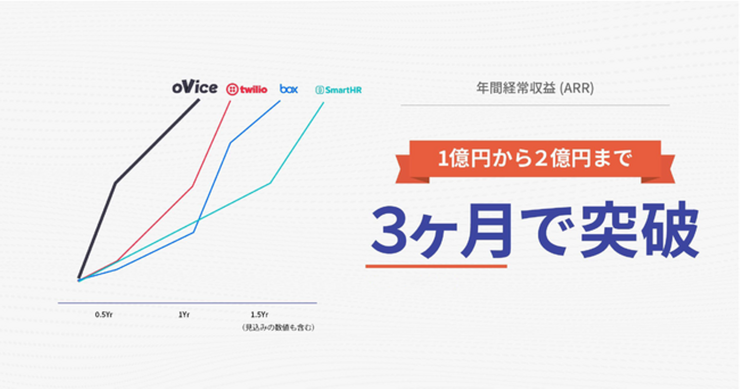 おかげさまで事業の成長スピードは早いペースで成長していて、普通は24ヶ月でARR1億円の壁を突破するところを8ヶ月で突破し、ARR1億円から2億円も3ヶ月で突破と、グローバルで見てもSlackに次ぐスピードです。今oViceは空間コミュニケーション市場では世界2位で、1位を目指して日々奮闘している真っ只中です。