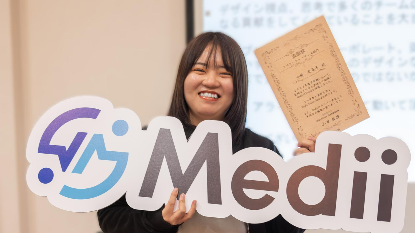 Mediiに関わりはじめた当初から、一人ひとりがバリューを大切にしている様子を見ていたので、バリューを体現する人として選んでいただけて、とても嬉しいです。また、デザインがプロダクトに留まらず、会社の様々な部門やシーンに広がりはじめたことを体感する賞で、改めてMediiのメンバーとして入社して良かったと強く感じることができました。