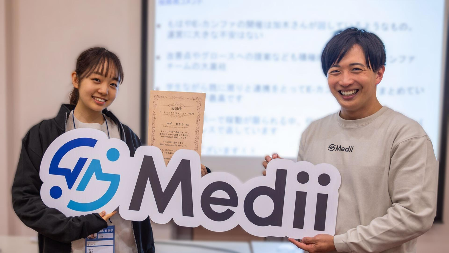 Mediiでは半期に一度「Medii Boost Camp」という2日間の社内合宿を実施しています。その中で、Mediiのバリューを体現し活躍したメンバーを称える「Medii Value Award」を行っています。2023年下半期の受賞者に、仕事への想いやMediiで働く面白さを聞いてみました。