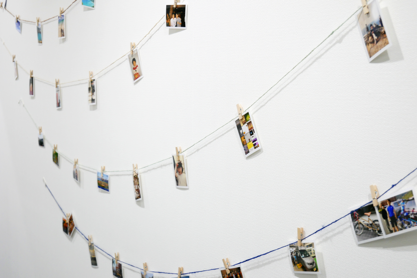 ▼エントランスを進むと、社員の「幼少期」や「好きなモノ」の写真がズラリ。個性が見えると好評でした。