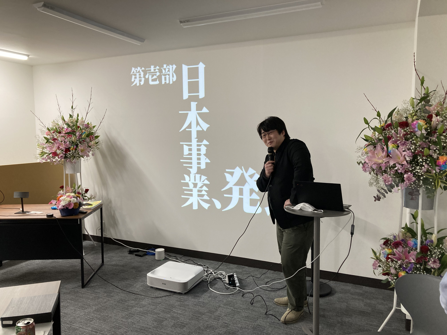 いろいろありながらも、無事パーティーを開催することができました。司会は事業開発責任者の新田が務めます。