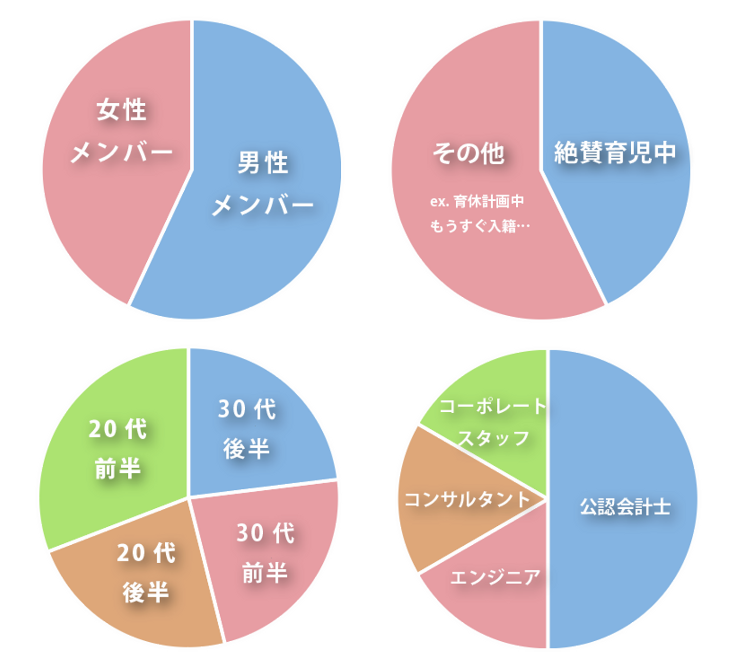 以上が共通事項としてあります。メンバーの属性内訳は以下の通りとなっております。現在男性メンバーが女性メンバーより多いため、出来れば半々だといいなという気持ちは否めませんが、ある日を境に女性からの応募が来なくなったため、現在原因究明中です。